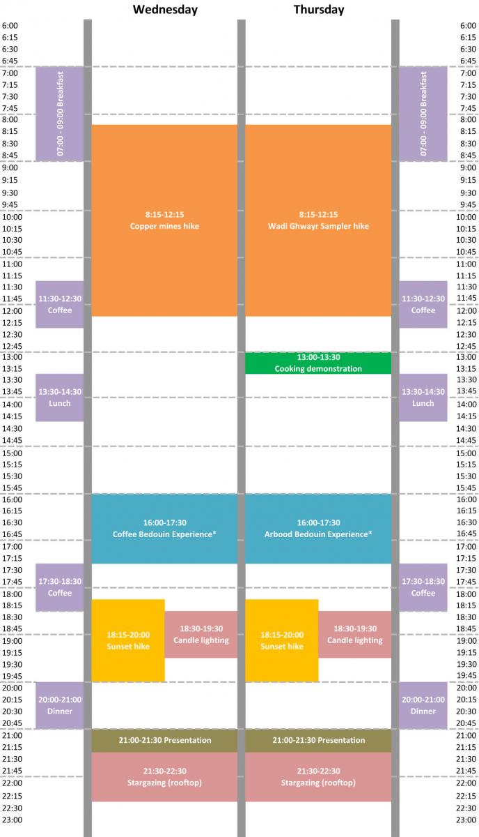 Check out what's planned for this day on our schedule below. Guided activities are included in the price of your stay, but there is a small supplement for activities involving the local community this money goes directly to the family hosting you. Mountain bikes and day with a Bedouin shepherd are available every day!